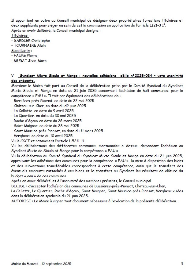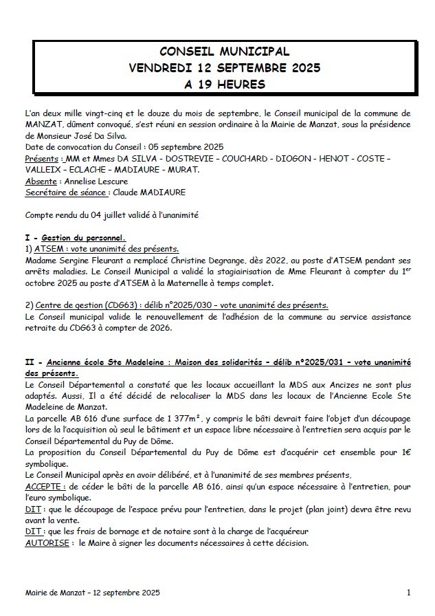 VIE MUNICIPALE > Conseils municipaux > Conseil du 12/09/2025